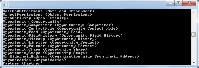 The next thing to do is to list all of the objects that are in the logged in users SalesForce account: