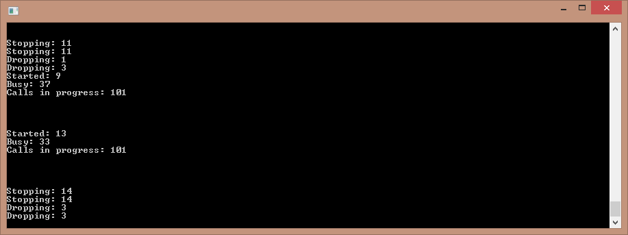 This is the output from the Fake Telephony Server App, showing the total number of events being published to the CallStatsIn Event Hub.