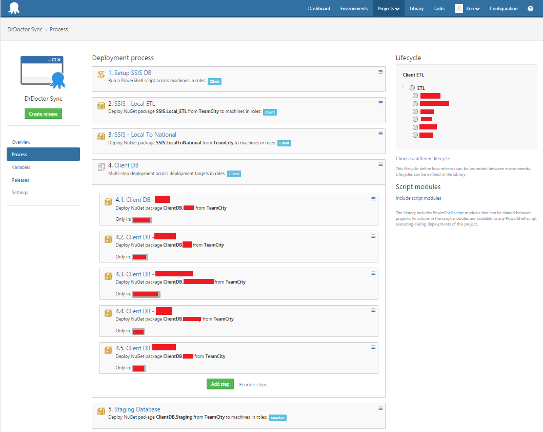 We are doing multi-tenanted releases for this project, which is why the Client DB (Step 4) is repeated multiple times. In a future post I’m going to cover off details about how we are doing multi-tenanted releases.
