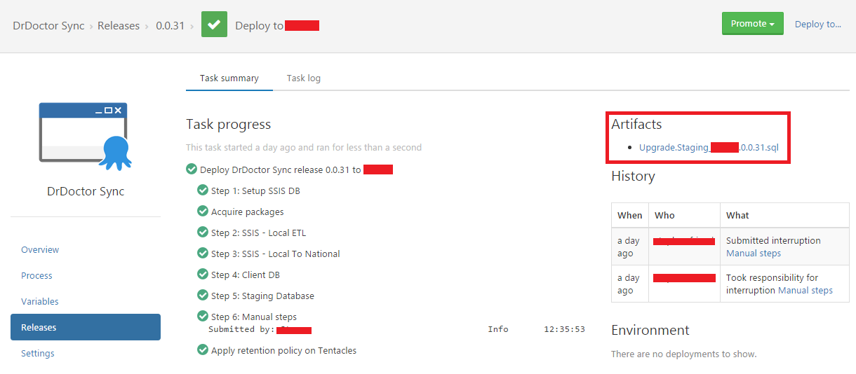 The first step in the release process is to ensure that the SSIS DB is up to date for use with our SSIS projects, within this step we ensure that: