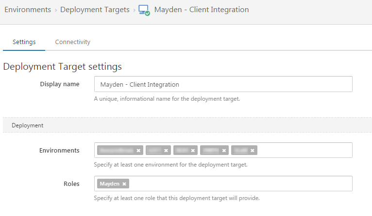 As per the Octopus guidance (linked to above) I created an environment for each of the hospitals DrDoctor currently works with. At this time they are all configured with an offline package drop deployment target while we work with the various IT departments to get their firewalls to allow the Octopus tentacles to communicate with our Octopus server.