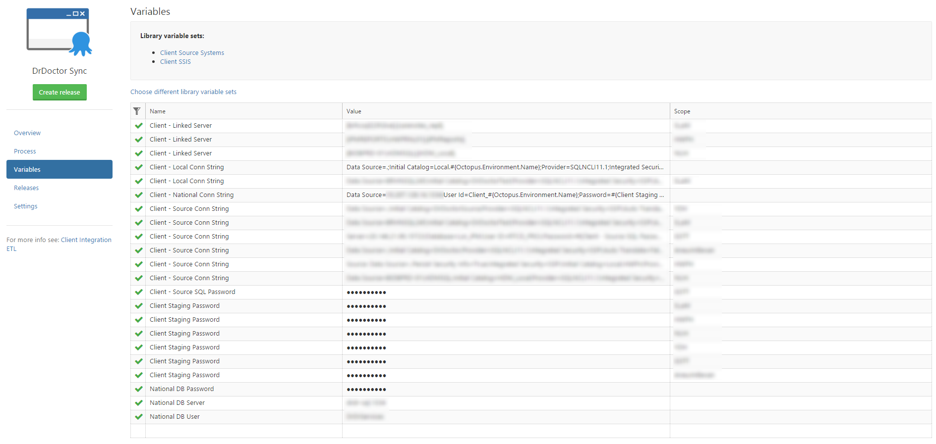 In our project we use Octopus environments to represent our different clients; you can see from the image below that we were defining a lot of different variables for each of our clients.