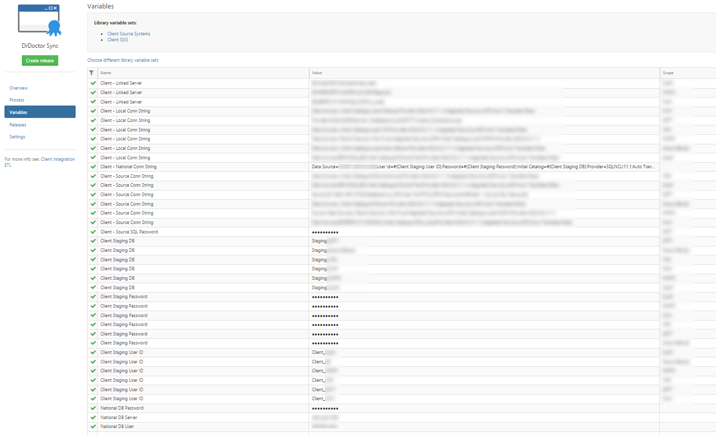 There is still room for exceptions, take the Client - Local Conn String variable, I was able to standardize this for all of our clients except for the one where we run our database on their cluster. For them I have a variable scoped just to their environment.