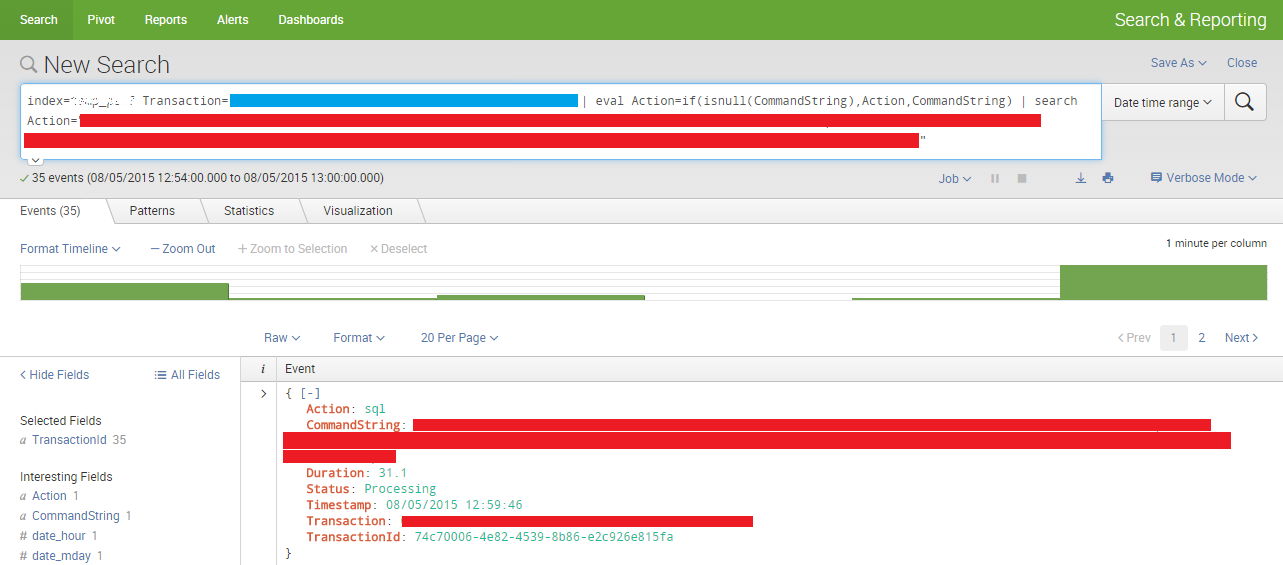 As an added bonus, Splunk lets you click on any of the charts and drill through to the raw events.