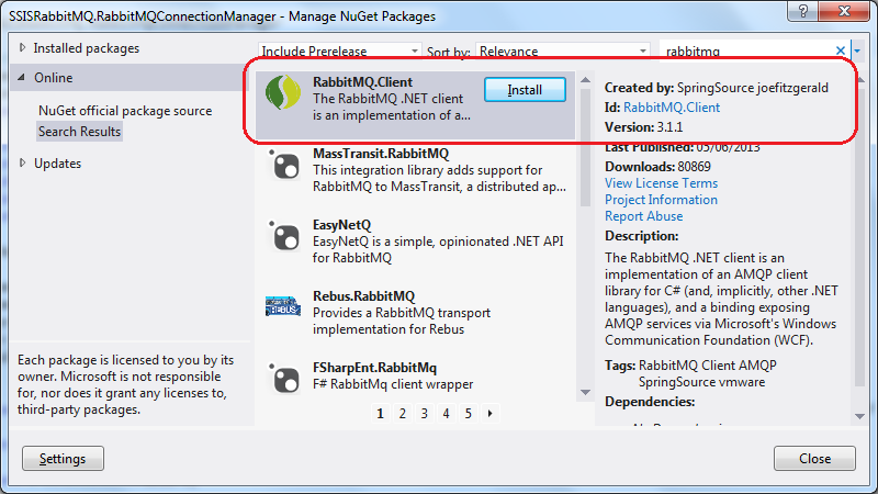Following on from my introductory post, here I will be explaining how to develop a Custom Connection Manager for RabbitMQ. This connection manager will then be used in future posts by a custom Source and Destination component.