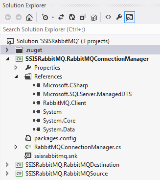 I created a new solution and added a new class library projects to it called SSISRabbitMQ.RabbitMQConnectionManager.