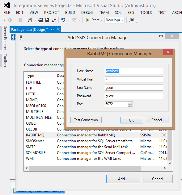 In my previous post I explained how to create a custom connection manager for SSIS to connect to RabbitMQ.