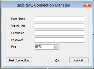 The code for the Test Connection button attempts to create a connection to the RabbitMQ broker using the values specified in the form.
