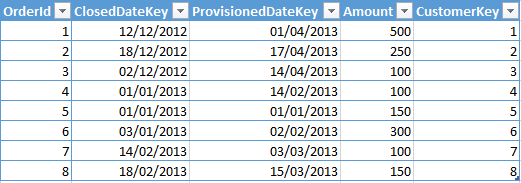 Instead of using [Won (£)] in the above formula I could have very easily used SUM(Sales[Amount]), but I thought that using [Won (£)] reads better, because the provisioned amount is the amount of “Won” orders that had been provisioned.