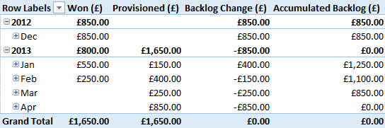 Backlog Change (£):=[Won (£)]-[Provisioned (£)]