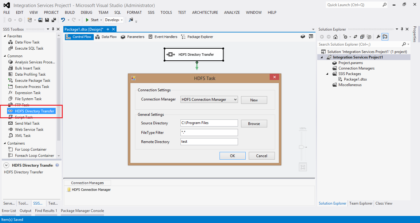 This is an update to my previous post about loading data into HDFS. After using the component a few times I realized that having to pass in a list of files to upload seemed a bit odd inside of a Data Flow task.