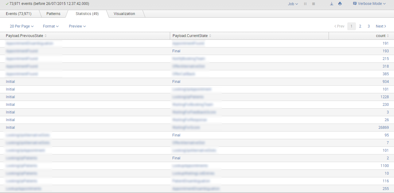 We’ve been using Splunk as part of our reporting system for about 4 months now. We put lots of different events into it, including a huge variety of events which are generated by our workflows. Whenever an instance of a workflow changes state we publish an event similar to this: